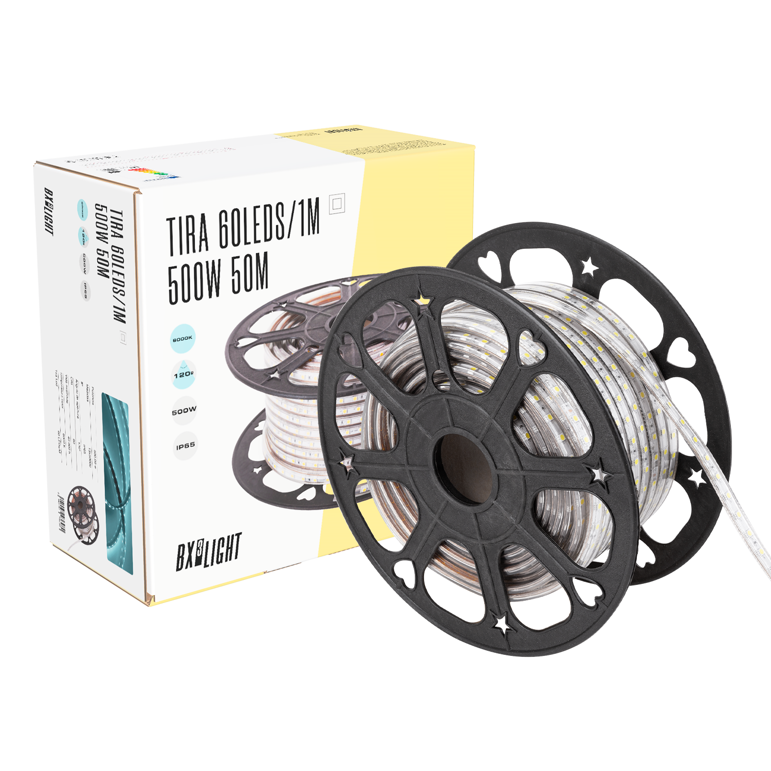 Faixa de 60 LEDs/M 500W 42.000Lm 6000ºK SMD5050 220VAC IP65 x50M 40.000H [BX3-220-60-50M-CW]