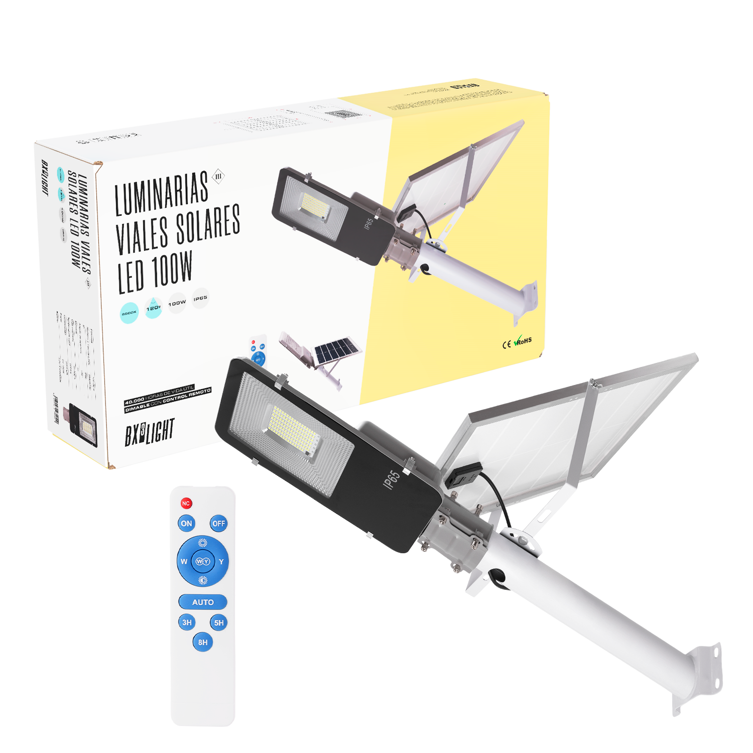 Luz de rua solar LED - controle remoto - regulável - painel: 6V 100W Bateria: 3,2V 15000MaH [BX3-FAR-SOL-100W-CW]
